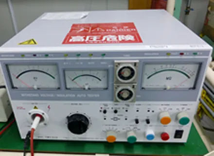 耐電圧試験を全製品行い、出荷するまでの品質管理を行っております。